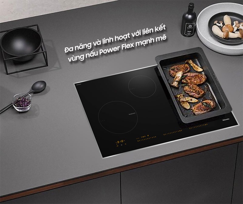 - Bếp từ Miele KM 7679 FR có vẻ ngoài tối giản, tông màu đen sang trọng, chế tác kiểu lắp âm khi bố trí cho không gian bếp thêm rộng thoáng. Có vùng nấu linh hoạt cho phép bạn nấu với dụng cụ có kích thước lớn hay vùng nhỏ có chế độ kiểm soát nhiệt độ, giảm thời gian chờ đợi giữa các lần nấu.