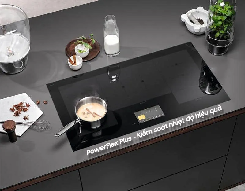 - Bếp từ Miele KM 7999 FL có thiết kế đa điểm 5 vùng nấu và có thể sử dụng 3 vùng nấu lớn PowerFlex Plus cho những dụng cụ nấu có kích thước lớn, giúp bạn thoải mái chế biến các món ăn.