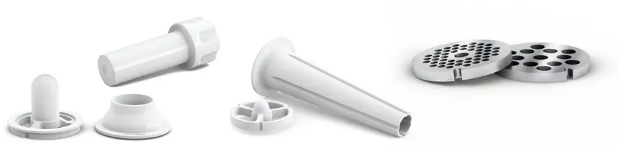 Bosch MFW3520W đi kèm nhiều phụ kiện như đầu làm thịt băm, đầu làm xúc xích, khuôn kebbe… cho phép bạn chế biến đa dạng món ăn từ các món Âu đến món Á.