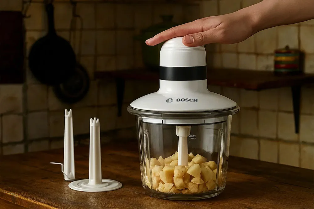 Bosch MMR15A1 được thiết kế để mọi người đều có thể sử dụng một cách dễ dàng. Chỉ cần đặt nguyên liệu vào cối, đóng nắp và nhấn nhẹ – máy sẽ tự động hoạt động. Cơ chế này vừa đảm bảo an toàn vừa giúp người dùng thuận tiện hơn khi chế biến.